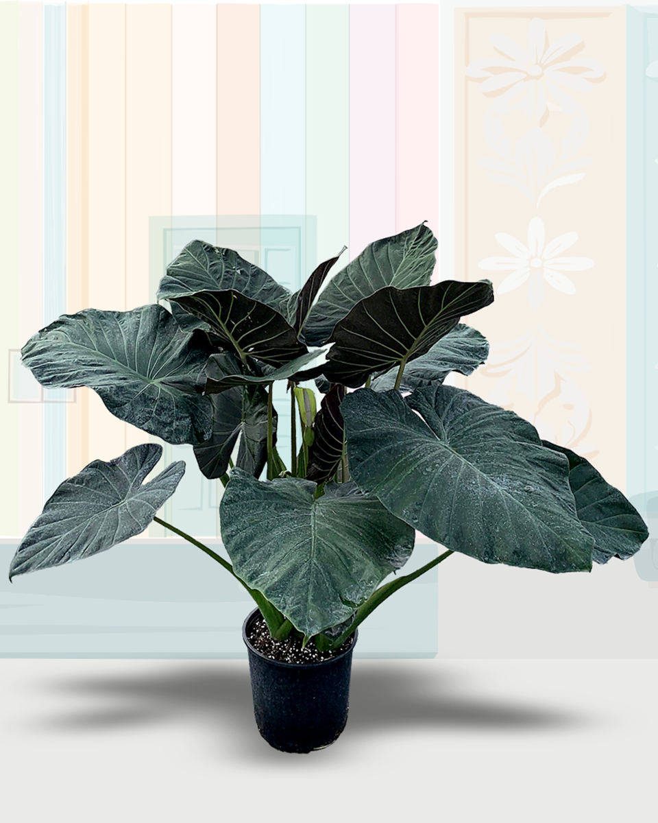 Alocasia Frydek. Also called Green Velvet Alocasia and Elephant’s Ear